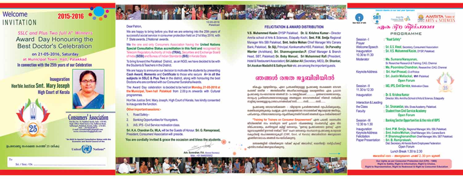 An NGO functioning for the last 24 years with the United Nations special consultative status and UNCTAD, Geneva accreditation status,member of the CCPC(Govt. of India), CAG member of TRAI(Govt. of India), BIS(Govt. of India), registered NGO on the state Food Advisory Council (Govt. of Kerala) and an affiliate membership withConsumers International since 2010.